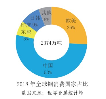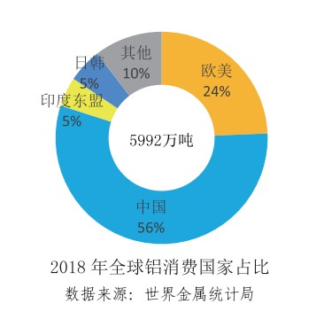 亞洲新興經(jīng)濟體已成為全球金屬礦產(chǎn)消費中心。2018年中國、印度、東盟等亞洲新興經(jīng)濟體,鐵、銅、鋁消費全球占比分別為59%、59%和61%。