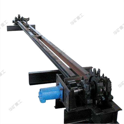 ⑷推車部位為礦車擋板,推車器前進(jìn)時(shí),推爪自動(dòng)抬起,推車器向后退及處于靜止?fàn)顟B(tài)時(shí),推爪處于下落的位置,推爪能自動(dòng)起落,避免了以往采用慢速絞車調(diào)車損壞礦車現(xiàn)象的發(fā)生;