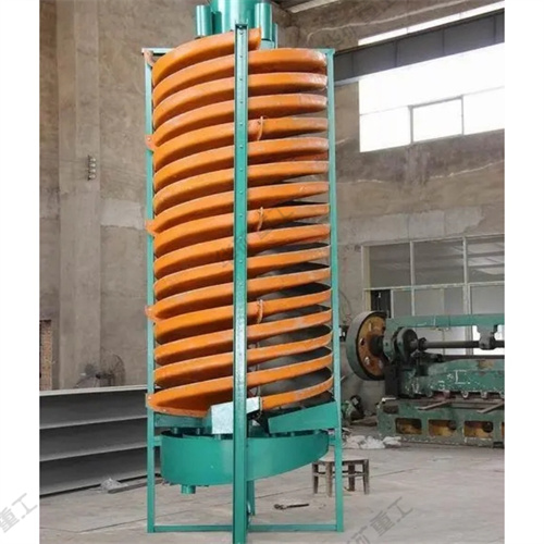 螺旋溜槽設(shè)備的主體部件,由玻璃鋼制成的螺旋片用螺栓連接而成。在螺旋槽的內(nèi)表面上涂以耐磨襯里,通常是聚氨脂耐磨膠或摻以人造金鋼砂的環(huán)氧樹脂。在螺旋溜槽的上部有分礦器和給礦槽,下部有產(chǎn)物截取器和接礦槽。整個設(shè)備用鋼框垂直地架起。螺旋溜槽的工作特點是在槽的末端分別截取精、中、尾礦,且在分選過程中不加沖洗水。