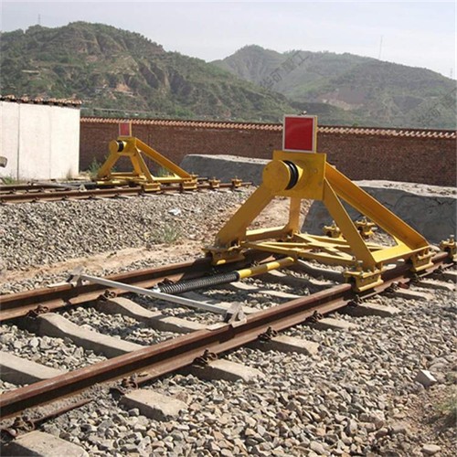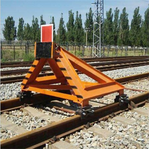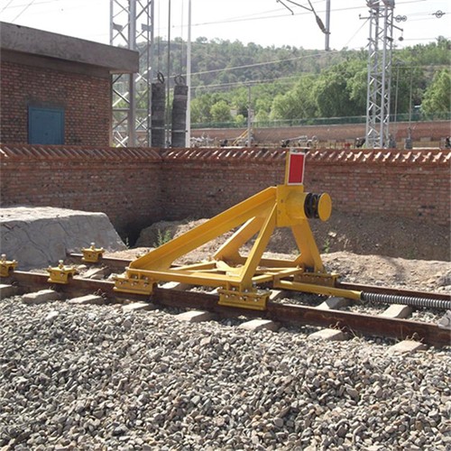 固定擋車器主要用于鐵路盡頭線上的防撞擋車安全防護(hù)設(shè)備,緩沖頭與車鉤之間通過緩沖橡膠板接觸,承受溜逸車輛車鉤的撞擊,迫使溜逸車輛停止溜逸,針對(duì)使用單位的實(shí)際情況,為滿足使用單位提出的具體要求而設(shè)計(jì)的產(chǎn)品。占用線路短,結(jié)構(gòu)簡單,造價(jià)較低,維護(hù)方便??梢杂迷谲囕v編組較小、沖擊速度不高的場合。