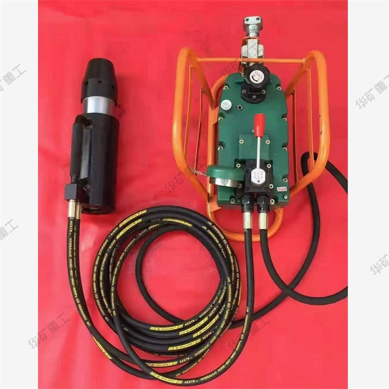 錨索張拉機(jī)具由張拉千斤頂、QYB-55型氣動(dòng)液壓泵以及高壓膠管等組成,構(gòu)成一組煤礦巷道錨索預(yù)應(yīng)力張拉安裝的工具。張拉千斤頂內(nèi)置工具錨,不但實(shí)現(xiàn)自動(dòng)錨固和自動(dòng)退錨,而且保證了操作安全,提高了工作效率。