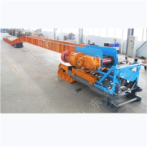 刮板轉(zhuǎn)載機是一種可以縱向整體移動的重型刮板輸送機,其長度較小,便于隨著采煤工作面的推進(jìn)和帶式輸送機的收縮而整體移動。轉(zhuǎn)載機安裝在采煤工作面運輸巷中,與可伸縮帶式輸送機配套使用,同工作面刮板輸送機銜接配合順槽用刮板轉(zhuǎn)載機有軋制中部槽組裝式和整體組焊箱式結(jié)構(gòu)兩種,主要用于綜合機械化采煤,在長壁工作面刮板輸送機和順槽可伸縮皮帶機之間起轉(zhuǎn)載輸送煤炭的作用。使用轉(zhuǎn)載機后,可以避免順槽可伸縮皮帶機機尾的頻繁移動,從而保證工作面生產(chǎn)的順利進(jìn)行。刮板轉(zhuǎn)載機主要應(yīng)用于高產(chǎn)、高效綜合機械化工作面順槽轉(zhuǎn)載輸送煤炭。它是由中部槽、鏈條、刮板及牽引系統(tǒng)組成。