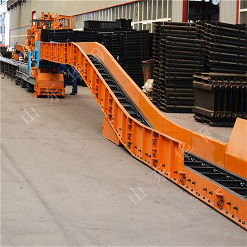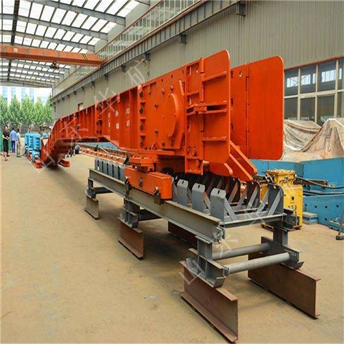 刮板轉(zhuǎn)載機(jī)是一種可以縱向整體移動(dòng)的重型刮板輸送機(jī),其長度較小,便于隨著采煤工作面的推進(jìn)和帶式輸送機(jī)的收縮而整體移動(dòng)。轉(zhuǎn)載機(jī)安裝在采煤工作面運(yùn)輸巷中,與可伸縮帶式輸送機(jī)配套使用,同工作面刮板輸送機(jī)銜接配合順槽用刮板轉(zhuǎn)載機(jī)有軋制中部槽組裝式和整體組焊箱式結(jié)構(gòu)兩種,主要用于綜合機(jī)械化采煤,在長壁工作面刮板輸送機(jī)和順槽可伸縮皮帶機(jī)之間起轉(zhuǎn)載輸送煤炭的作用。使用轉(zhuǎn)載機(jī)后,可以避免順槽可伸縮皮帶機(jī)機(jī)尾的頻繁移動(dòng),從而保證工作面生產(chǎn)的順利進(jìn)行。刮板轉(zhuǎn)載機(jī)主要應(yīng)用于高產(chǎn)、高效綜合機(jī)械化工作面順槽轉(zhuǎn)載輸送煤炭。它是由中部槽、鏈條、刮板及牽引系統(tǒng)組成。