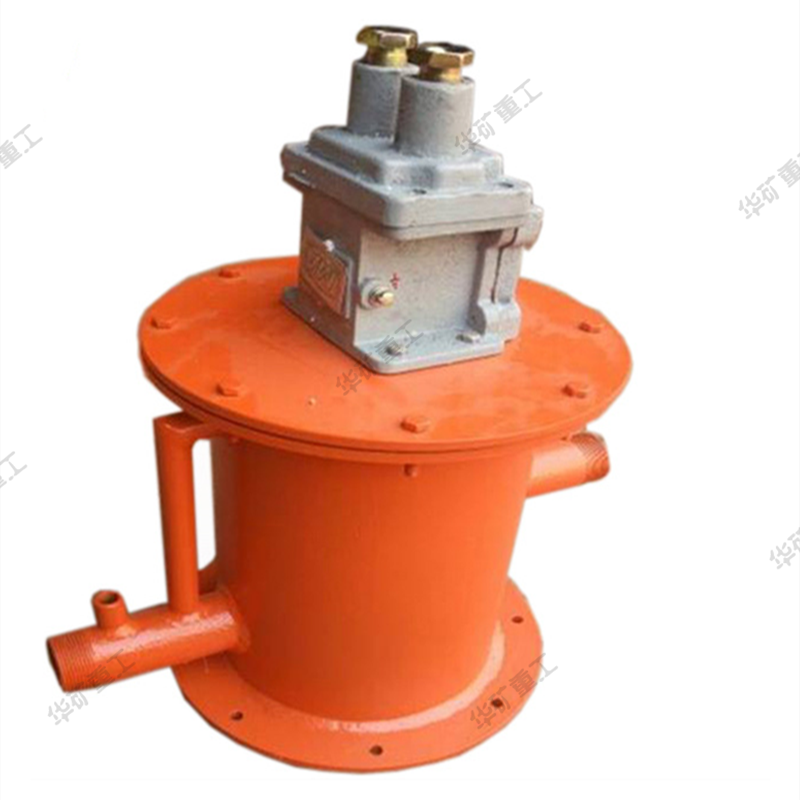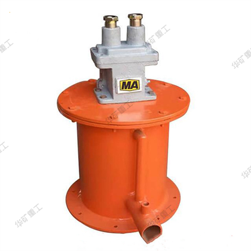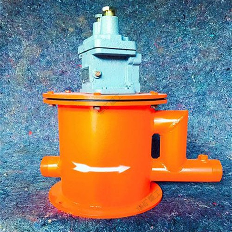 斷水保護裝置由隔爆外殼和內(nèi)部組裝微動開關(guān)組成,外殼包括主腔和接線箱,運動部分為直動式。水箱內(nèi)有不銹鋼浮子,浮子室有進水口,浮子、密封墊及排氣管出水口組成;利用水的浮力使浮子浮起打開微動開關(guān),保證泵的控制回路接通;礦用微動隔爆開關(guān)管道無水時浮子落下,微動開關(guān)打開,泵的控制回路斷開。還可根據(jù)需要在出水口安裝水壓表顯示供水管的壓力(安裝磁化水室)。