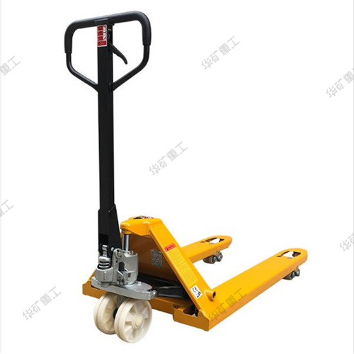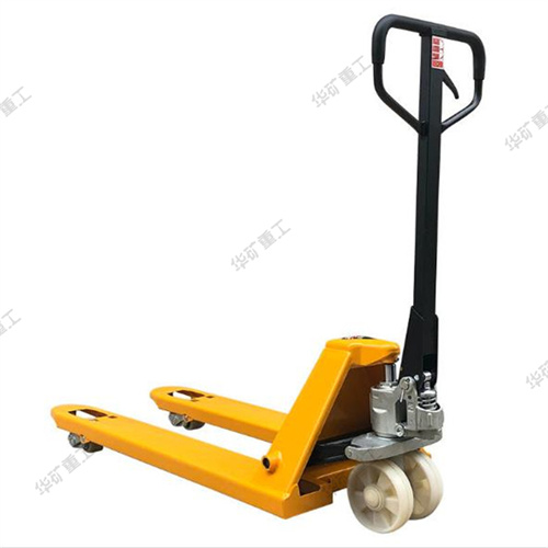 在使用時(shí),將貨叉插入托盤(pán)孔內(nèi),由人力驅(qū)動(dòng)液壓系統(tǒng)來(lái)實(shí)現(xiàn)托盤(pán)(貨物)的起升和下降,并由人力拉動(dòng)完成搬運(yùn)作業(yè),是托盤(pán)運(yùn)輸工具中使用簡(jiǎn)便、有效、常見(jiàn)的裝卸搬運(yùn)工具。
