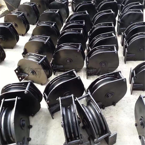 耙斗裝巖機導向輪又名滑輪,區(qū)別于尾輪。安裝在裝巖機的中部極端部,用以引導和改變鋼絲繩的方向.它由側板,繩輪,心軸,滾動軸承等組成,并采用防塵結構,以延長其使用壽命.耙斗裝巖機用導向輪用于對軟體管道或者鋼絲,尼龍繩等軟體線性物體移動過程中的方向引導。導向輪帶有滑輪結構,在某些項目或產(chǎn)品中導向輪會起到省力的作用。耙斗裝巖機用導向輪由套筒、調節(jié)絲杠、腳輪、底座、轉向座和銷釘組成,套筒內(nèi)套裝有調節(jié)絲杠,調節(jié)絲杠的一端安裝有搖把,另一端通過調整絲母與腳輪架連接,腳輪架與腳輪連接;轉向座通過銷釘與底座連接,底座與轉向座上分別設有相同中心距的對應孔,U型銷釘依次插入至轉向座和底座對應孔內(nèi),U型螺栓將底座固定在拖車的矩形管上。